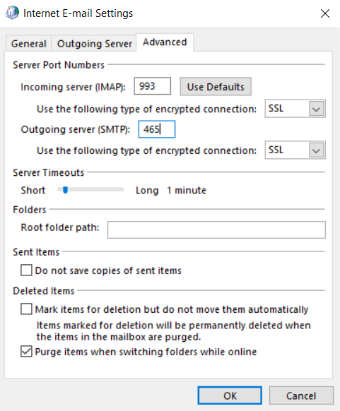 - Outgoing server (SMTP): 465, Encryption: SSL